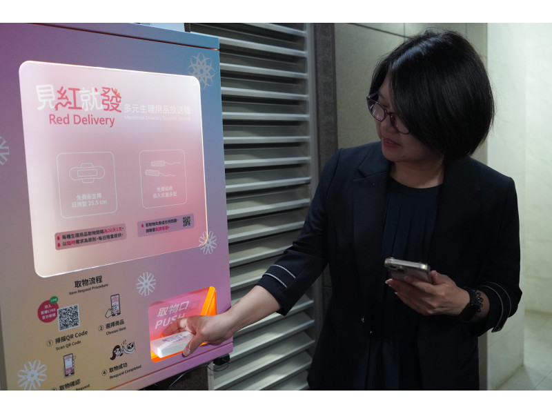【臺北訊】為推動月經平權、消除月經污名,臺北市政府今(11)日與北安扶輪社共同舉辦「生理用品暨多元生理用品機台捐贈儀式」,於市政大樓一樓設置「多元生理用品放送機」,提供洽公民眾於臨時或緊急情況下使用。民眾僅需掃描機台QR Code,即可免費領取衛生棉或衛生棉條,每人每20日可領取一次,操作簡便。