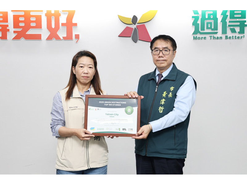 【臺南訊】台南老屋民宿的永續發展今(114)年以「時光留痕,古城新生」獲選「2025全球百大目的地故事獎」,觀光旅遊局於今日(11/11)的市政會議獻獎。這是一個國際級的競賽,台南市首次參加全球百大目的地故事競賽,與38個國家、180多個旅遊目的地一同角逐獎項,並入選全球百大目的地故事之一,是台灣唯二獲此殊榮的城市。黃偉哲市長今(11/11)日於市政會議肯定市府團隊與旅宿相關業者的努力,讓臺南老屋民宿打入國際永續旅遊市場成為永續旅遊典範,並期許台南市的觀光推廣能持續獲得國際綠色旅遊市場的注目。