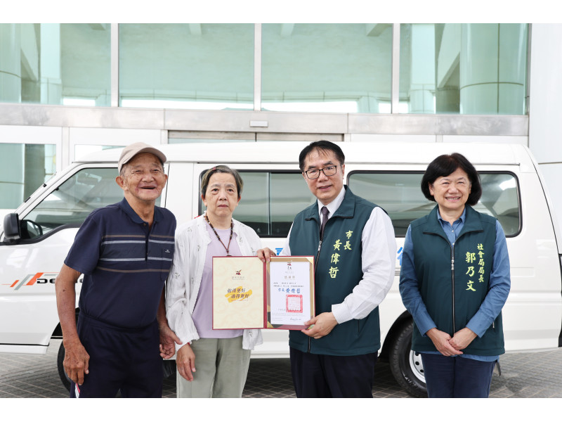 【臺南訊】為響應台南市「照顧弱勢優先」的施政理念,鄭夙雅女士代表家族捐贈1輛復康巴士予台南市政府。市府今(11)日於永華市政中心舉辦捐贈儀式,由台南市長黃偉哲代表受贈並回贈感謝狀,感謝鄭氏家族的善舉與資源挹注,與市府一起完善身心障礙者交通及福利服務。