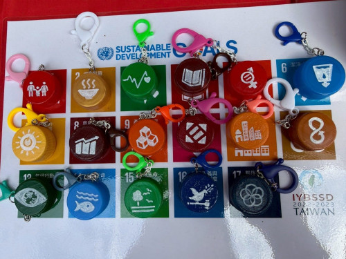 為落實永續教育理念,發起「瓶蓋收集行動」,親師生共同蒐集超過300個回收瓶蓋。閱讀節當天請四年級小朋友說明「瓶蓋彩繪鑰匙圈」創作理念,再引導民眾從實作中認識資源再利用的重要性。在小志工的引導下,民眾思考SDG12的圖案創作或是畫出自己喜歡的圖案,將原本不起眼的瓶蓋轉化為兼具創意與環保意義的鑰匙圈。不僅傳達回收物再生的概念,也鼓勵孩子從生活中培養負責任的消費態度,落實SDG12的核心精神。