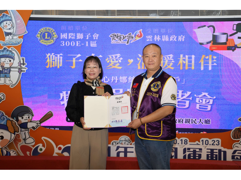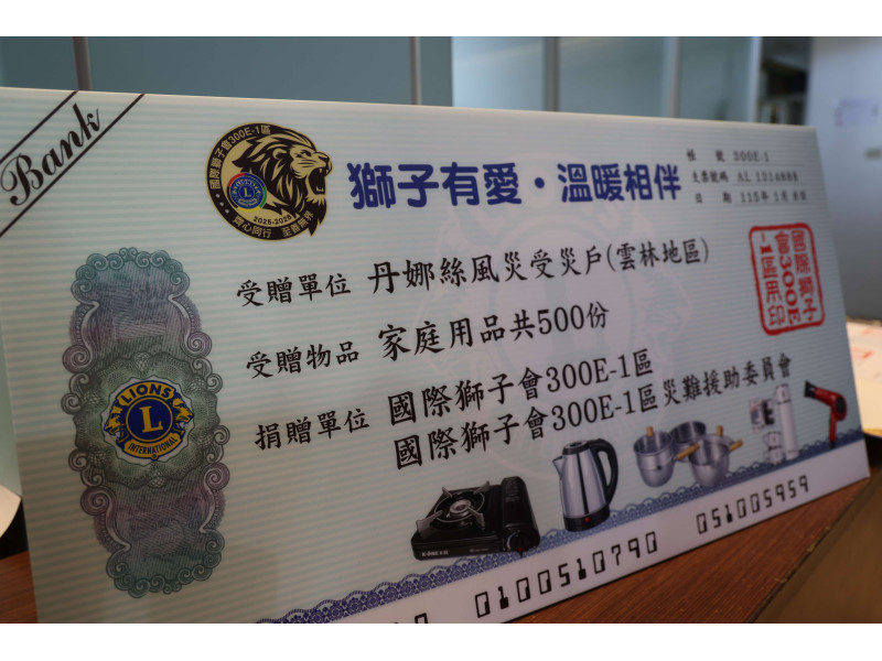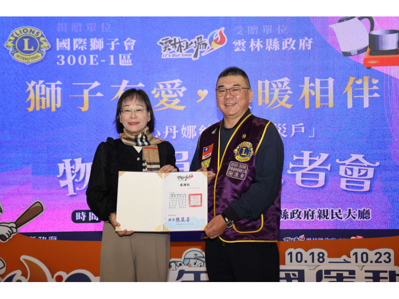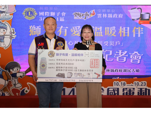 國際獅子會300E-1區總監黃裕洲感謝雲林縣政府讓獅子會有機會承接此次捐贈活動,並幫忙將物資發到受災戶手上。希望藉由獅子會微薄的力量,向社會大眾傳達小小的力量、一個光,也能點燃社會的一把火,服務照顧需要的角落。
