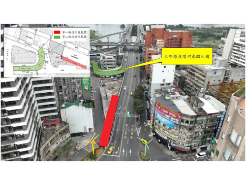新工處城西工務所主任詹鎧逸表示,為減少交通衝擊,工程期間採先建後拆方式分為3階段進行,第1階段為主線路堤段引道拓寬,拓寬完成後於第2階段前調整康定路路型,原主橋引道之右轉康定路2線車道均改為左轉康定路往北銜接環河南路,拓寬完成之1車道右轉康定路;第2階段為拆除原銜接環河南路之迴轉180度匝道,再銜接拓寬引道橋梁段;第3階段,針對周邊平面道路(雅江街、成都路)調整,最後再對周邊步道及貓公園進行復舊。為降低對周邊民眾生活之影響,工程施工範圍之圍籬將採全天24小時佈設,施工時段除特定需於夜間施工項目外,原則採日間施工方式辦理;實際施工時程及各階段交維車輛改道資訊,後續將依實際工程進度,再適時發布新聞稿及CMS(資訊可變標誌)宣導,提供用路人改道詳細資訊。