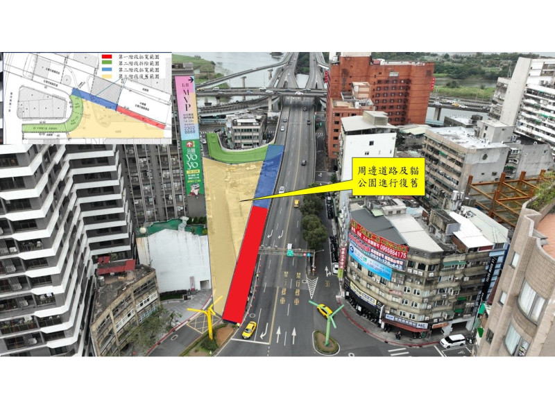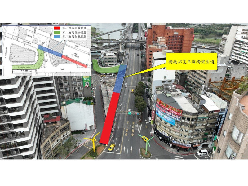 新工處工務科科長高銘伸表示,中興橋是通勤族及在地居民往來雙北地區的重要通道。惟中興橋原下至環河南路之引道採迴轉180度設計,影響其所繞行之民宅安寧且不利周邊發展,為提升交通品質及減少對該民宅居住品質之影響,新工處採取拆除原下環河南路匝道並拓寬主橋引道1車道,完工後主橋下臺北市引道由原為最外1線車道下迴轉匝道接環河南路,其餘2線右轉康定路之路型調整為最外1線車道直行右轉康定路往南,其餘2線車道左轉康定路往北銜接環河南路,另臺北市上橋引道之交通動線維持不變,預期能減少成都路與康定路口車流壅塞問題。