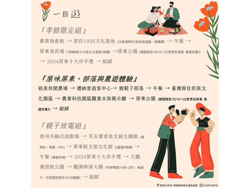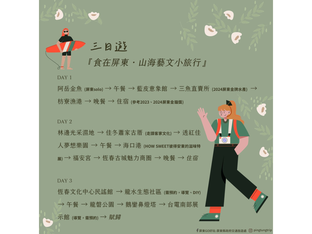 《走進屏東,成為1%的旅人》 邀民眾放慢腳步 體驗屏東的溫在快節奏的現代生活中,越來越多人渴望旅遊能「慢一點」。屏東縣政府最新推出年度形象影片《走進屏東,成為1%的旅人》,以「深度旅遊」為核心,邀請旅遊達人工頭堅與人氣... 詳全文 »