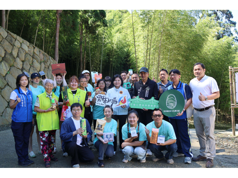 【雲林訊】雲林縣政府10月4日至5日為期兩天於古坑鄉之世界竹地標-草嶺石壁森林療癒園區舉辦「2025草嶺石壁森林療癒季」,為遊客帶來一系列精彩內容,以赫茲多巴胺頻率共振喚醒身心能量,提供豐富的竹林療癒體驗。今(5)日上午縣長張麗善、新聞處長陳其育、文化觀光處副處長陳世訓、石壁休閒農業區發展協會理事長賴郁憲及諸多山友與在地鄉親到場共享一場身心靈療癒之旅。
