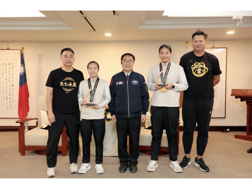 黃偉哲表示,台南選手在國際舞台展現令人驕傲的韌性與實力,不僅為國家爭取榮耀,也讓世界看見台南青年的潛力與競爭力。他特別感謝學校的全力配合、教練的專業訓練,以及家長長期的陪伴支持,讓4位選手在面對遙遠旅程與截然不同的氣候、飲食等挑戰時,依然能在亞青運奪下金牌與銅牌,展現強大氣勢與堅定意志,實屬難能可貴。