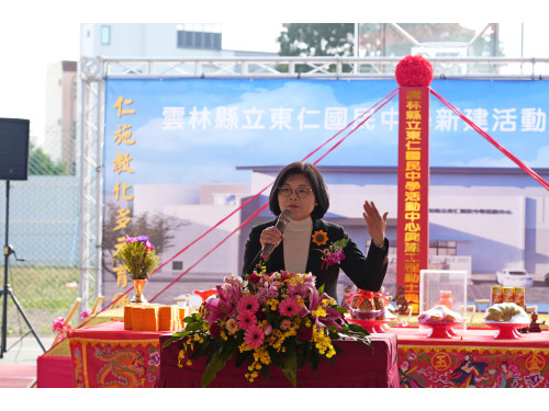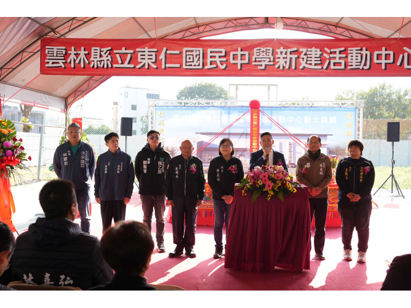 【雲林訊】雲林縣虎尾鎮東仁國中8日舉行新建學生活動中心動土典禮。縣長張麗善表示,學生活動中心預計明年3月完成,終結學校創校近20年沒有活動中心,師生舉辦大型活動需在戶外日曬雨淋窘境。她表示縣府今年已再編列2000萬經費,補足設施內容,力求活動中心功能完善、安全實用。張麗善縣長指出,東仁國中自創校以來,一直是全縣唯一尚未設有活動中心的國中,她上任後與前立委林文瑞多次向中央爭取補助經費,可惜未獲支持。孩子的學習不能等,縣府毅然決定由縣庫自籌經費推動興建。