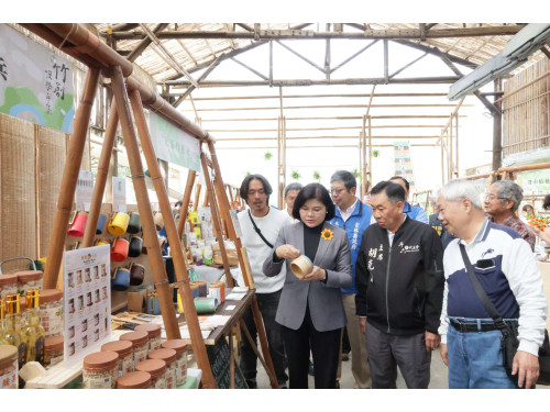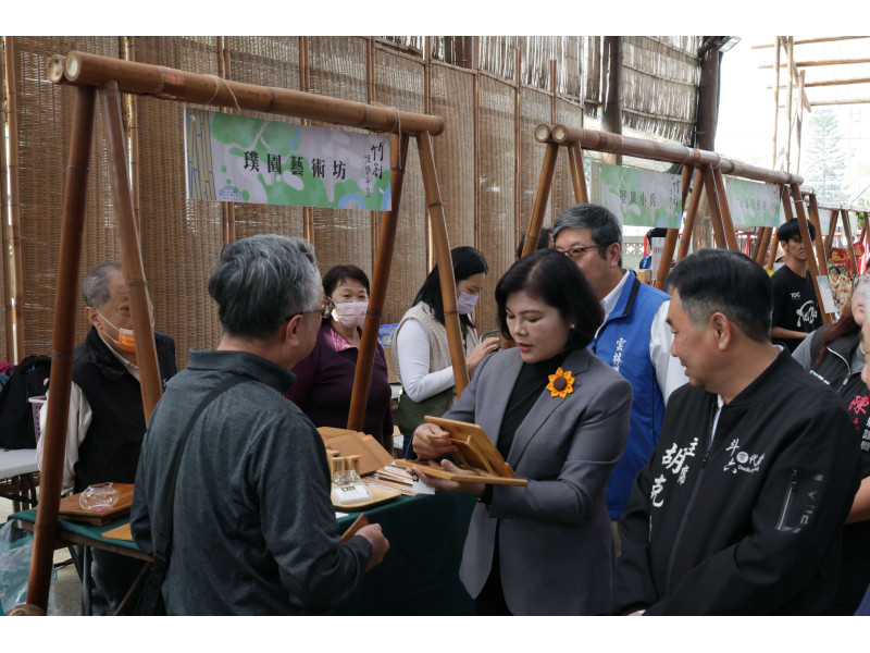 張縣長指出,縣府在草嶺石壁打造出世界級竹地標,擁有516公頃孟宗竹林,而竹子本身就是永續產業,每4年疏伐時需有完整產業基地支撐,因此斗六糖廠竹創基地應運而生。透過台3線門面的打開,民眾走進園區可認識不同竹種、了解竹產業發展,並透過DIY體驗認識竹製碗、杯、筷等生活用品,也能欣賞竹材結合藝術創作的裝置與文創商品,讓竹文化更加貼近生活。