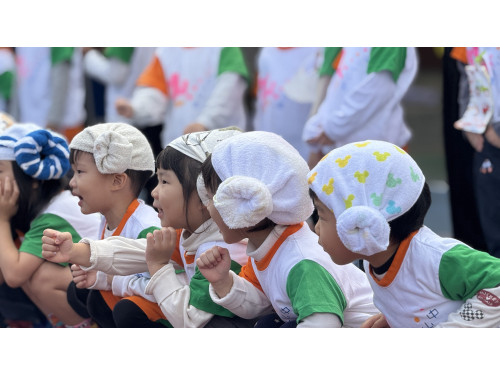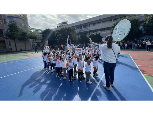 本次運動會最引人注目的亮點之一,運動會以各班級的特色動物隊伍進場揭開序幕,孩子們與老師們及家長共同利用回收素材、生活物品等製作的,發揮巧思及創意的「班級動物頭飾及裝飾」。從剪紙、黏貼到創意裝飾,每個頭飾都是孩子的小小藝術品,這不僅展現孩子的創造力,更把環保教育自然融入活動中,當各班小動物們列隊隨著音樂進場、進行「動物大集合」時,可愛度爆表,現場一片驚呼與歡笑。