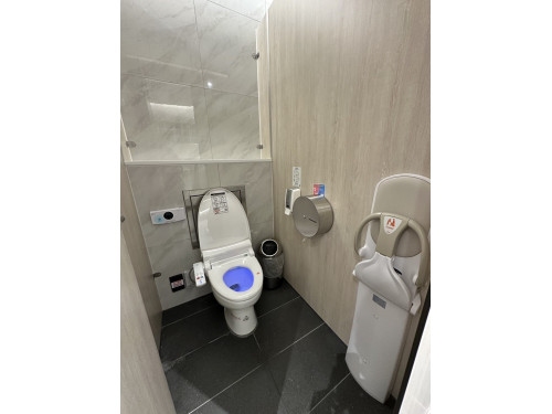 坐式廁間全面設置免治馬桶座墊,提供溫熱座墊與溫水清洗功能;並備有馬桶座墊消毒液、衛生紙,旅客使用更安心。