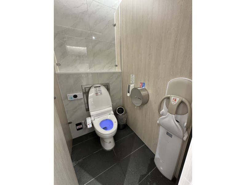 男廁、女廁均設置尿布臺及落地型兒童安全座椅,女廁增設男童小便斗,方便帶小朋友出遊的家長。
