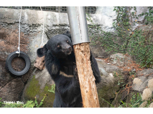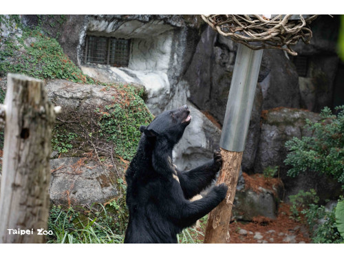 【臺北訊】臺灣動物區的黑熊活動場近期出現了像棵樹又像鳥巢般的物體佇立地面,讓路過遊客不禁猜想它的功能,這其實是保育員們為黑熊設計的行為豐富化設施!保育員會不定期將蔬果藏在設施上,引發黑熊探索取食的行為,平常沒有食物的情況下,也可以看到黑熊對設施展現嗅聞、啃咬、推動等互動。透過行為豐富化設施能讓動物園照養的動物獲得心理和生理的正向刺激,有助於減輕壓力、降低異常行為,增加表現自然行為的機會,從而提高整體福祉與生活品質。