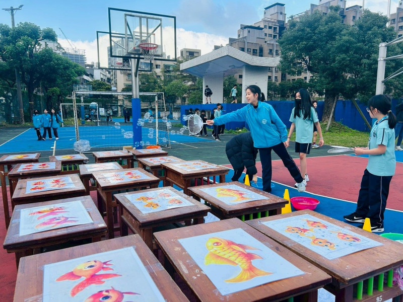 本次活動由七、八年級各班推派學生代表,共36位學生擔任活動策劃者,與本校家長會及「還我特色公園行動聯盟(特公盟)」合作,歷經三次遊戲發想工作坊。學生們以「泡泡、紙箱、彩繪」三種材料為核心,發想出貼近青少年經驗、兼具趣味與創造力的遊戲內容,從玩法設計、規則討論到遊戲名稱,皆由學生共同討論、提案與投票決定,完整展現民主參與的過程。
