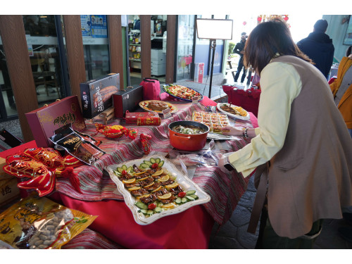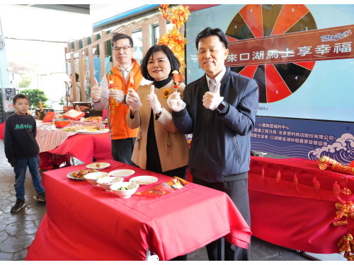 【雲林訊】雲林縣政府攜手小農聯盟福利中心,7日於台61線公路口湖休息站舉辦「來口湖馬上幸福—口湖魚三寶推薦記者會」,主打烏魚子、鰻魚及台灣鯛等雲林在地特色水產。縣長張麗善邀請春節連假行經台61線的用路人,不妨進站歇腳選購,將最優質、最新鮮、最具年節意象的雲林農漁產品帶回家,送禮自用皆幸福滿滿。記者會現場熱鬧登場,縣長張麗善與台灣在地農經整合協會執行長吳瑞忠、公路局雲嘉區養護工程分局副分局長黃秋揚,運用雲林在地食材烏魚子、番茄及小黃瓜等,親手製作創意料理「果漾烏金串」,分享雲林農漁產的多元風味。現場並展演以台灣鯛為主食材的「龍騰馬躍雙鮮鍋」、烏魚子米糕及蔬果鰻鰻等佳餚,並邀請旅客試吃一口吃烏魚子、鰻魚等產品,氣氛熱絡、年味十足。