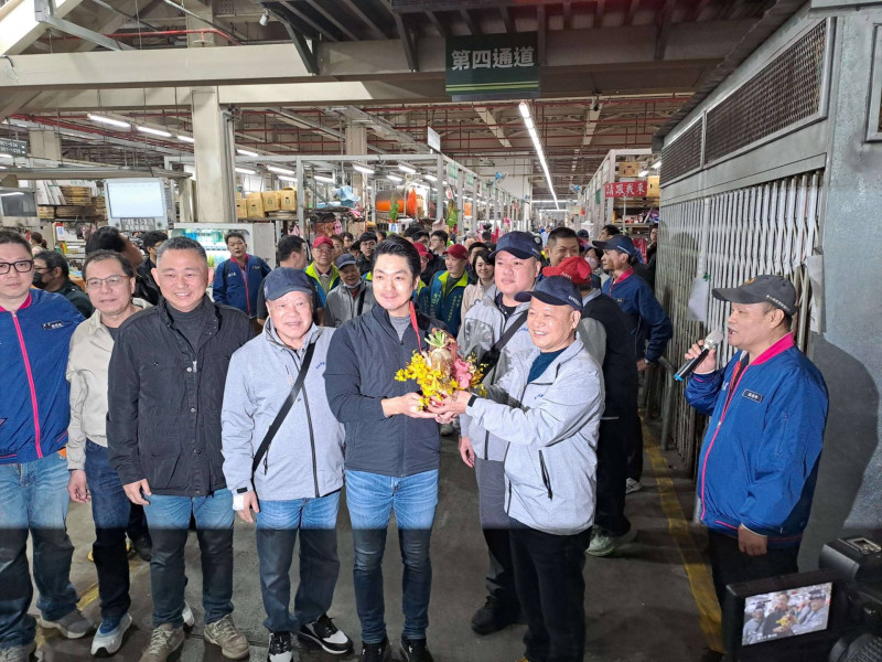 蔣市長走訪農產品批發市場,對農產、漁產公司全體員工及供銷業者的辛勞表示嘉勉與謝意,並於魚類批發市場武聖殿及第一果菜批發市場土地公廟參拜祈福,祈求風調雨順、農產品供應平穩、市民平安過節,祝福所有攤商、市民新年賺大錢,歡喜過好年。
