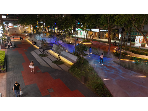 首先,得到「特優」的「瑠公綠廊人行環境改造工程」,本工程營造的光環境為提升城市夜間空間質感並守護市民通行安全,以「人本導向、安全舒適、節能減碳及強化大灣河道意象」為四大核心原則,不僅導入智慧節能科技,更透過藝術化照明,將這座城市綠廊轉化為兼具歷史記憶與生態友善的夜間美學空間。主要動線設置低眩光、IP65高防護等級投射燈與景觀燈,確保夜間行走安全,並透過重點照明突顯「水光環」與「魚群雕塑」等節點,導引人流,並於採用「水波紋燈」重現大灣河道歷史紋理;花臺及座椅搭配間接照明(硬、軟線燈),營造溫潤柔和的休憩氛圍。全區選用高效率LED結合智慧控制系統,達成節能減碳。植栽區則採「低色溫(3300K)、低背光、無藍光害」設計,守護生物多樣性。本次改造不僅提升步行體驗,更透過光影敘事,讓瑠公綠廊成為城市中低碳、友善且具文化深度的夜間亮點。