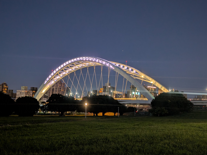 其次,得到「優等」的「中正橋改建工程」,本工程獲獎核心在於透過光影媒介,展現「新橋」的現代鋼構力量,讓新店溪夜景多一城市地標。中正橋新橋採河中不落墩的大跨度鋼拱橋設計,以雙拱肋桁架系統展現現代工程技術,285公尺的拱肋內藏智慧調光系統,搭配2700K暖白光突顯鋼構質感;懸垂鋼索透過精準配光由下而上提亮,遠觀宛如水面上跳動的琴弦。此外,嚴格控制配光角度,有效防止光污染並降低對水域生態的干擾,落實環境友善理念。