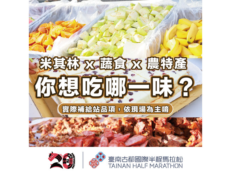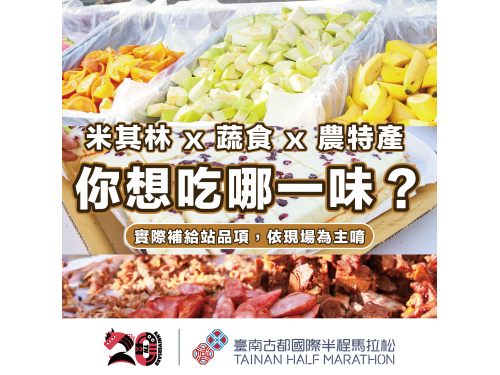 臺南市政府體育局陳良乾局長表示,古都馬的賽道補給向來是賽事一大亮點。今年補給內容持續升級,不僅提供澎湃在地美食,更兼顧不同族群需求,包含友善蔬食跑者專區,提供蔬食、低碳及植物肉補給;結合臺南米其林美食與在地特色農特產;同時設置蛋白補給站,提供舒肥雞胸肉、滷豆乾等高蛋白補給,讓跑者完賽後能即時補充營養,兼顧美味與專業運動需求。