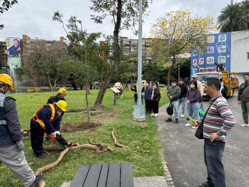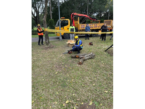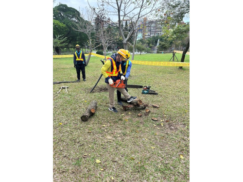 公園處園藝工程隊楊國瑜隊長表示,熟練的技能必須靠不斷的練習精進,除了平日的訓練,也藉由每年的實地教育訓練驗收樹木扶正及鏈鋸教學成果,內為大家注入防災意識,建立各單位施作標準流程,真正面對災害時,才能從容應對,發揮最佳鏈鋸手的戰力。在行道樹木斷枝時給予正確修剪方式,行道樹木倒伏時判斷存活率,兼顧民眾安全,給予最佳處置,實地演練扶樹、鏈鋸更是希望救災團隊在使用時能熟練並注意要點,確保救災時勞安及效率。