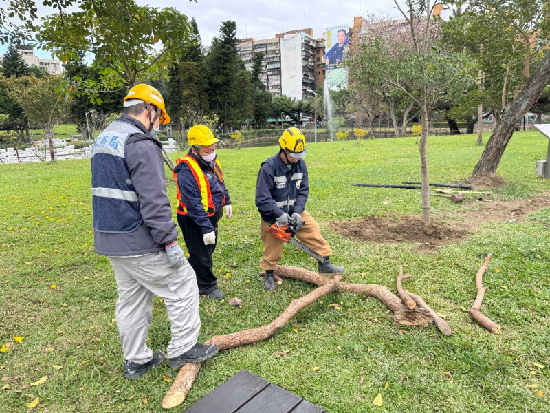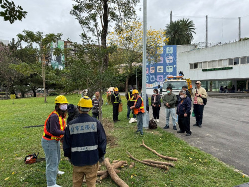 【臺北訊】北市公園處3/6日於青年公園舉行防颱教育訓練暨座談會,現場並有北市環保局、區公所機關人員、多位里長出席本次教育訓練,藉由實際鏈鋸教學培訓救災尖兵,為北市防災注入強大力量。